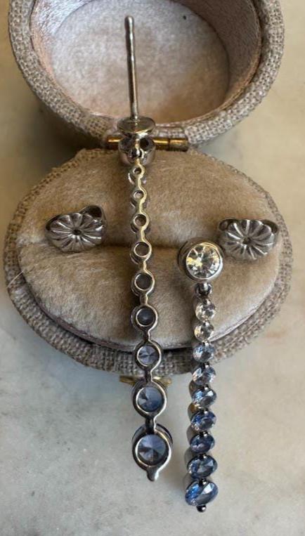 Denim Ombre Sapphire 1 3/4 carat Vanilla Sapphires 1/3 carat EARRINGS