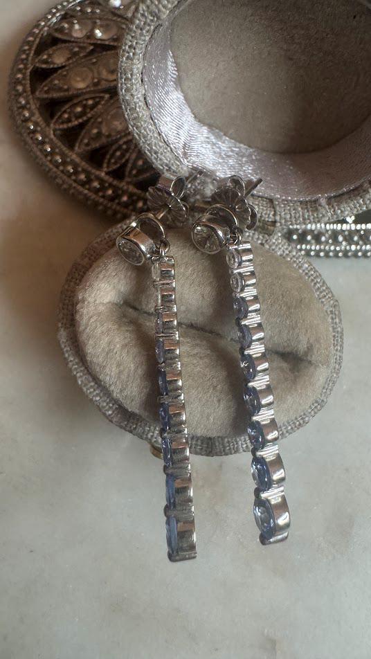 14 kt White GoldDenim Ombre Sapphire 1 3/4 carat Vanilla Sapphires 1/3 carat EARRINGSPierced post earrings3.20 gramsCondition Excellent with tags LeVian Designer