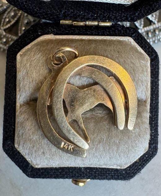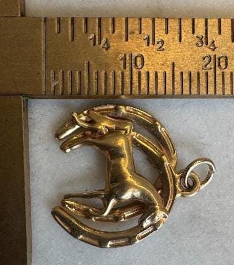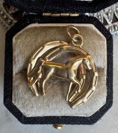 14 kt Yellow GoldHorse Shoe Horse Charm1.95 gramsVintage Pre-ownedCondition good with minor surface wearBox shown not included, Beautifully packaged with 100% recycled material