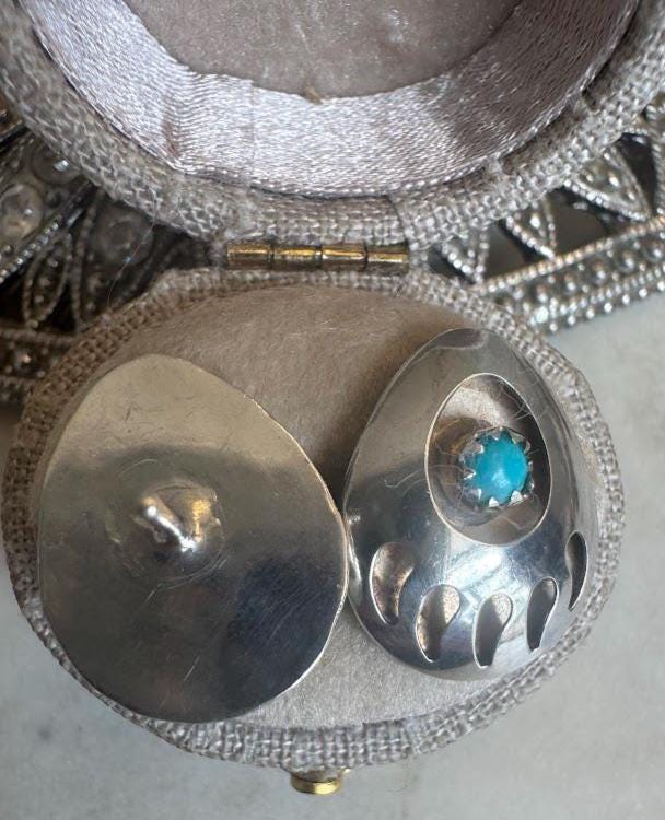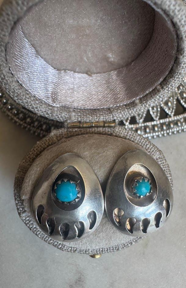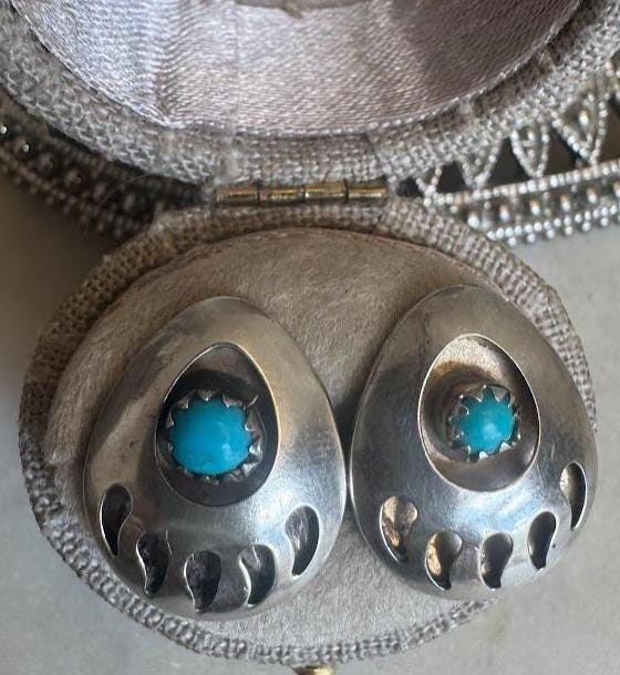 Sterling .925Turquoise Bear Paw Post earring3.22 gramsVintage Pre-owned Condition excellent with minor surface scratchesBox shown not included, Nicely packaged with 100% recycled material