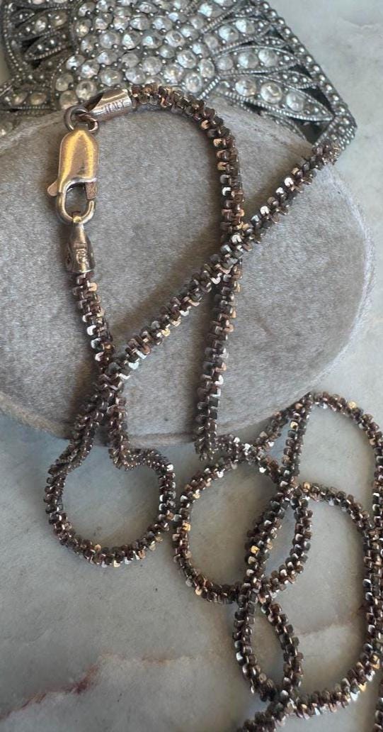Sterling .925 Sparkle Chain Rose Gold Finish 24inLobster claw clasp10.2 gramsPre-owned Condition Excellent with minor surface scratchesMarked Made in ItalyBox shown not included, Nicely packaged with 100% recycled material