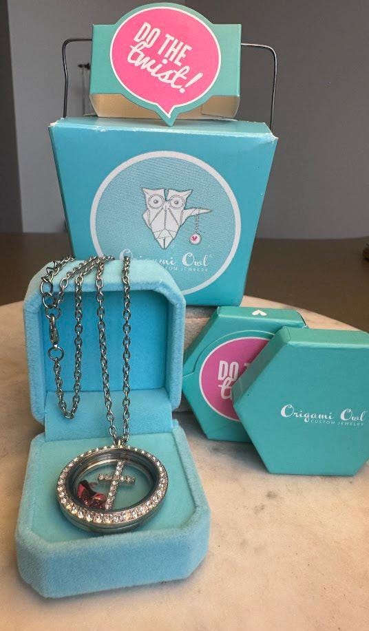 Silver Tone Stainless MetalCross & Shoe CharmsRolo cut chain 21in & 3in extenderLobster claw clasp20.71 gramsPre-owned Condition excellent with minor surface wearDesigner Origami Owl with Original Boxes