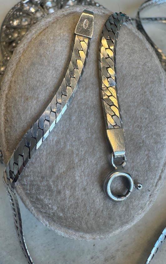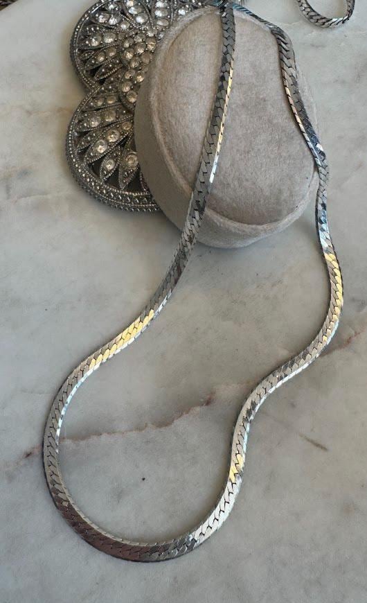 Sterling .925 Herringbone Chain 4mm24in lengthSpring ring clasp13.92 gramsVintage, Pre-owned Condition Excellent with minor surface wearBox shown not included, Nicely packaged with 100% recycled material