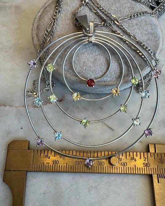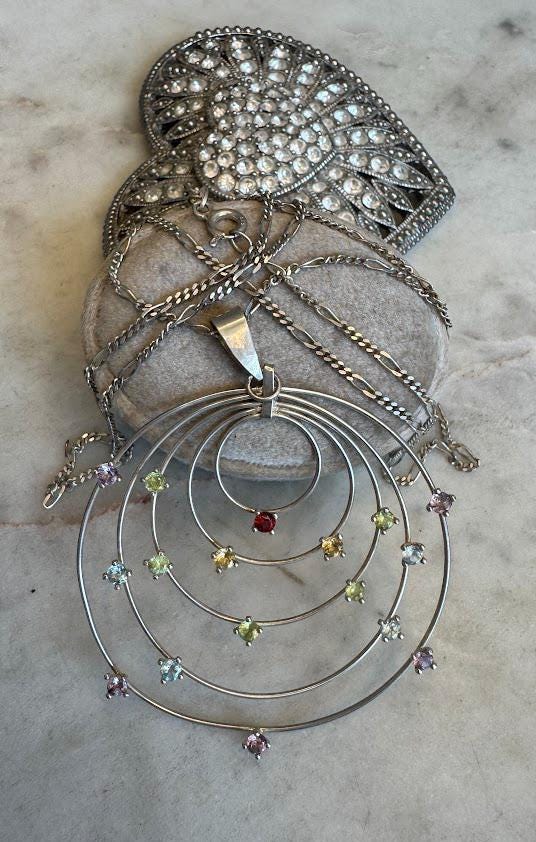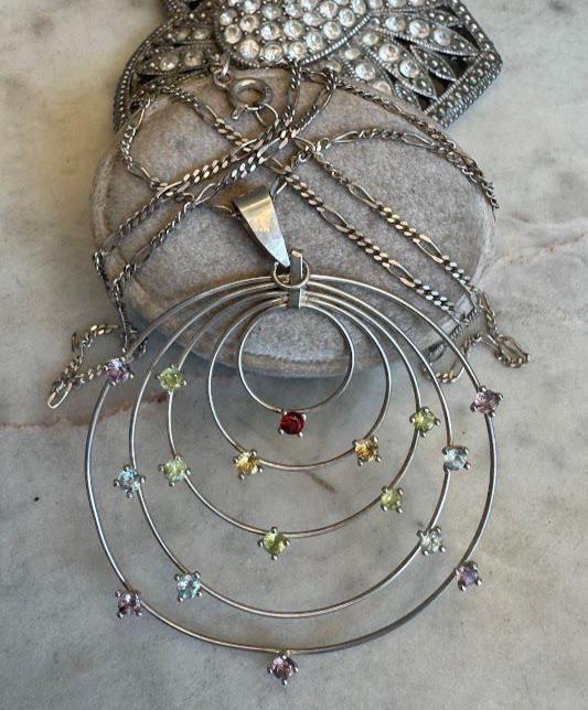 Sterling .925 Garnet, Citrine, Peridot, Blue Topaz, Amethyst Accent StonesFigaro Chain 30inSpring Ring Clasp10 gramsVintage, Pre-owned Condition good with minor surface wearNicely Packaged