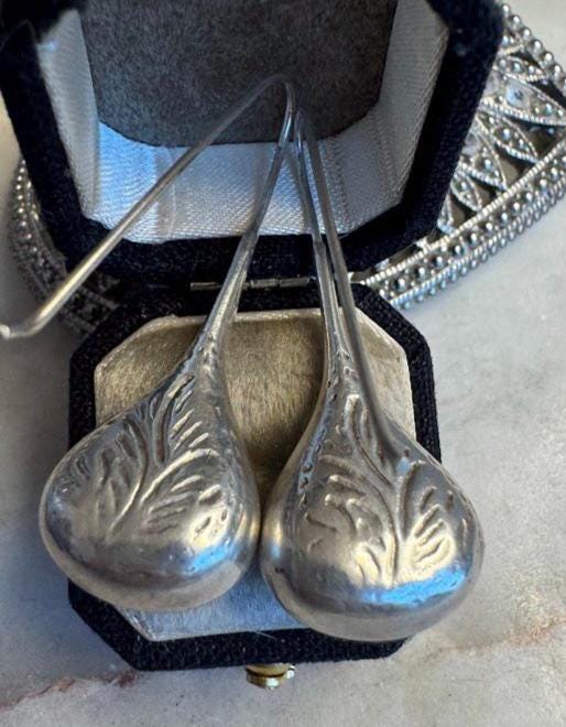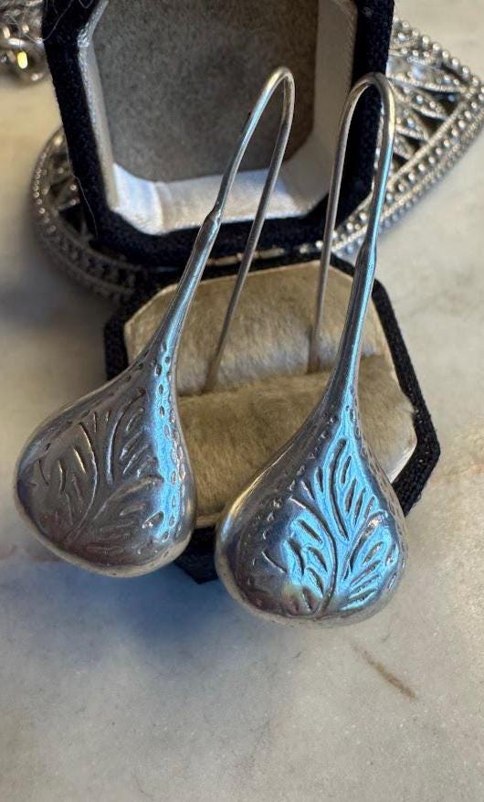 Sterling .925Dangle Drop Earrings4.87 gramsVintage Pre-owned Condition excellent with minor surface wearBox shown not included, Nicely packaged with 100% recycled material