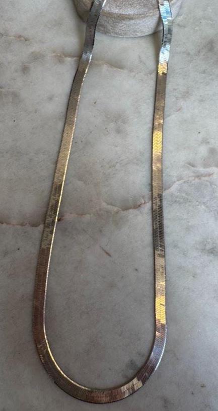 Sterling .925 Reversible Herringbone Diamond Cut & Polished 5mm18in lengthLobster claw clasp12.10 gramsPre-owned Condition Excellent with minor surface wearBox shown not included, Nicely packaged with 100% recycled material