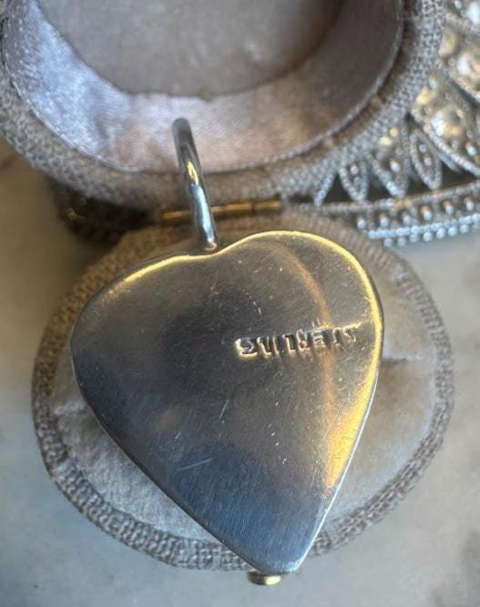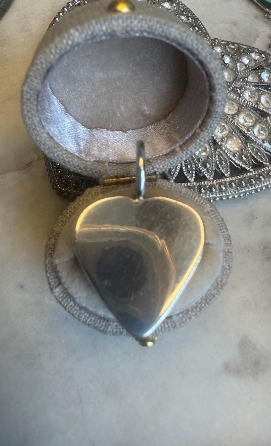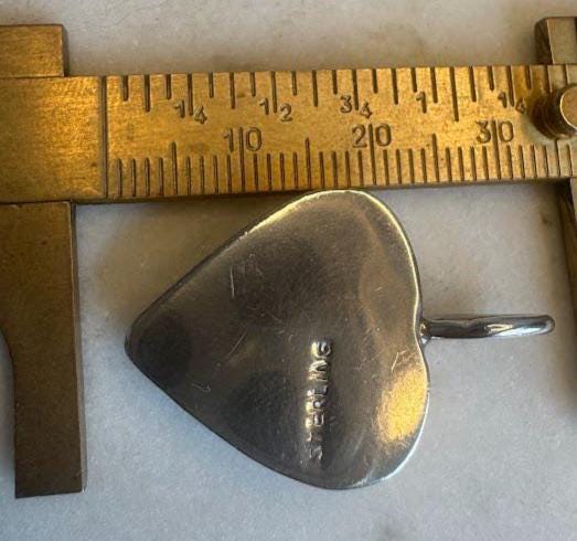 Sterling .925Primitive Hand Forged Heart Pendant6.93 gramsVintage Pre-owned Condition good with minor surface wearBox shown not included, Nicely packaged with 100% recycled material