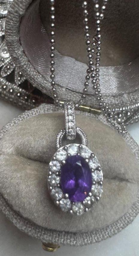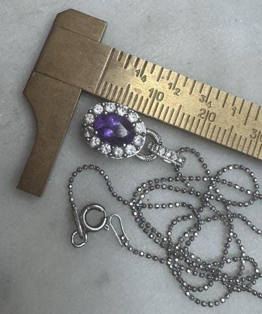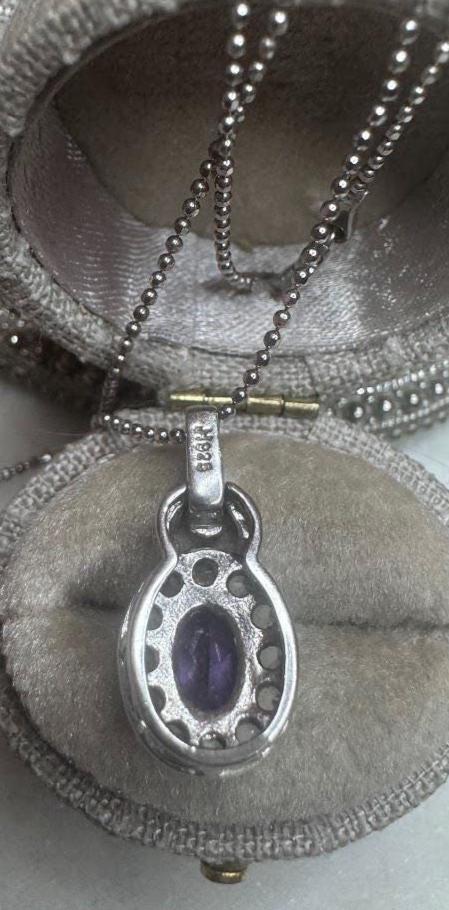 Sterling .925 Amethyst Center StoneBeaded Chain 18inSpring Ring Clasp4 gramsVintage, Pre-owned Condition good with minor surface wearBox shown not included, Nicely Packaged