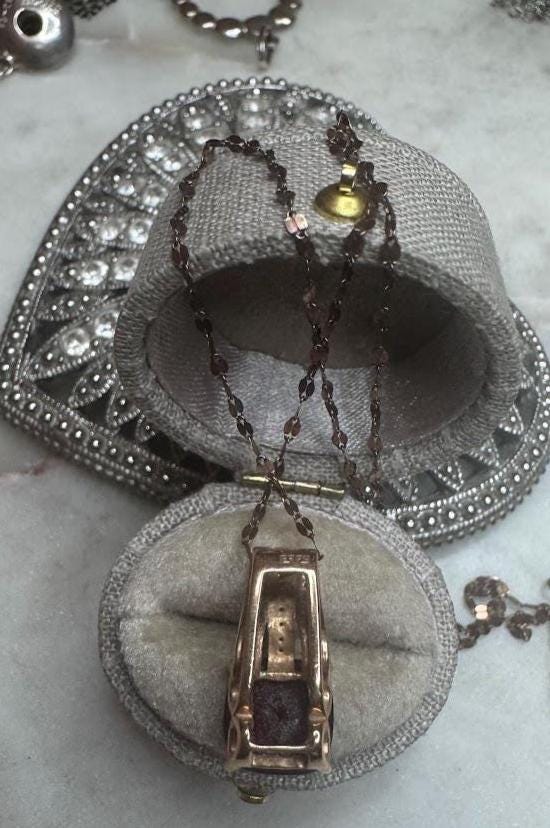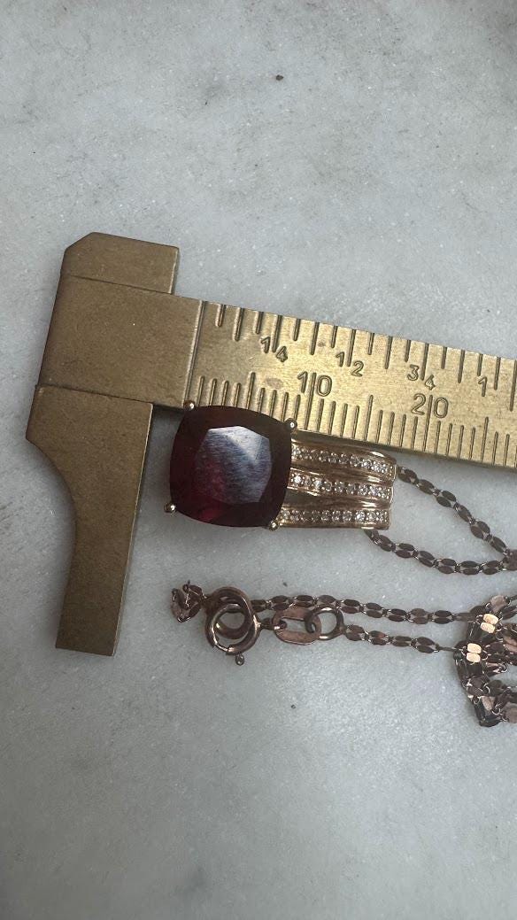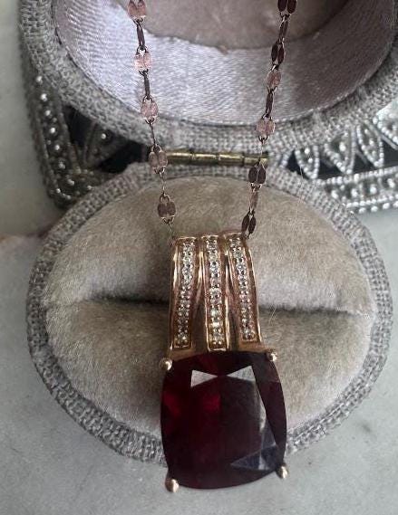 14kt Rose GoldRhodolite 4 carats & Diamond Center Stone Cable Link Diamond Cut Chain 16in NEW Very DaintySpring Ring Clasp3.18 gramsPre-owned Condition excellent with minor surface wearBox shown not included, Nicely Packaged