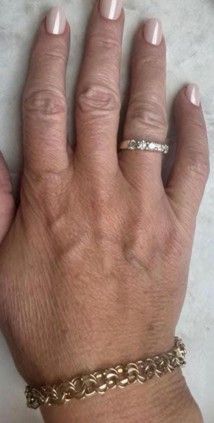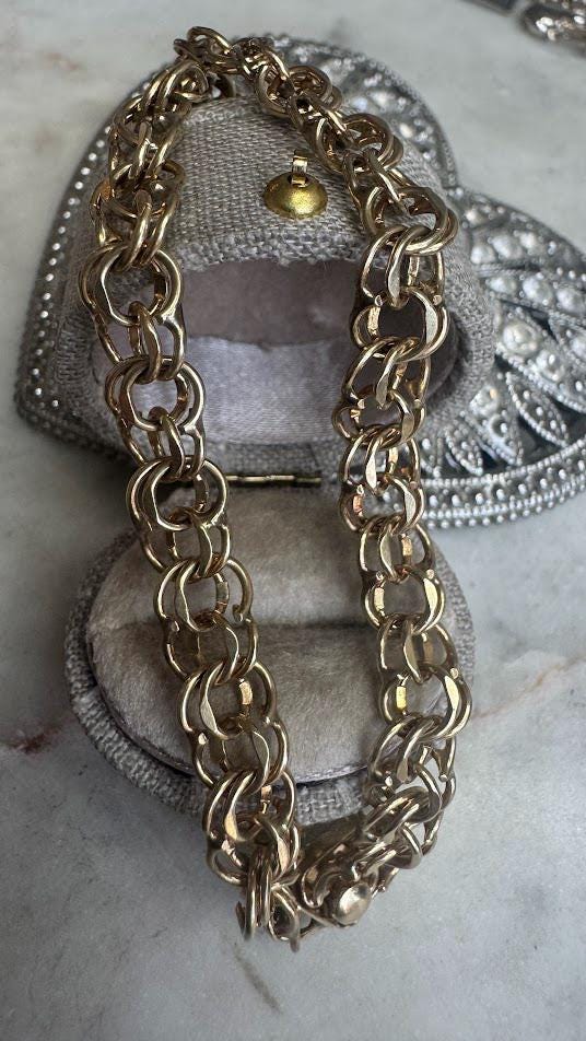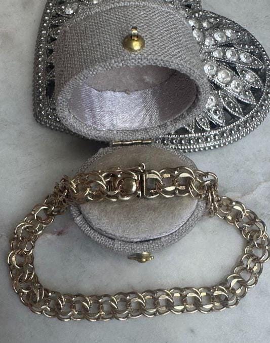 Yellow Gold 14ktDouble Link Diamond Cut7.5 in lengthPlunge clasp with safety clasp10.18 gramsVintage Pre-owned Condition excellent with minor surface wearBox shown not included, Nicely packaged with 100% recycled material