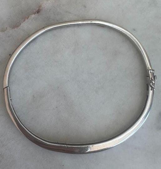 Sterling .925 Cuff Bracelet7in width13.58 gramsCondition Good with minor surface wearHand forged and small creases in bangleDesigner Marked BB