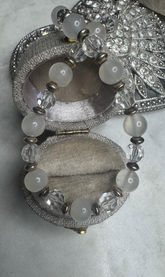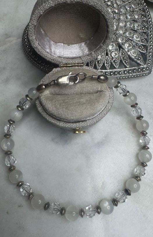 Sterling .925 Moonstone & Swarovski Crystal Accent StonesLink chain 7.5inLobster claw clasp6.53 gramsVintage Pre-owned Condition excellent with minor surface wearBox shown not included, Beautifully packaged with 100% recycled materials