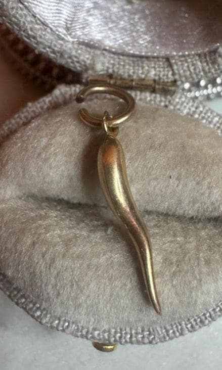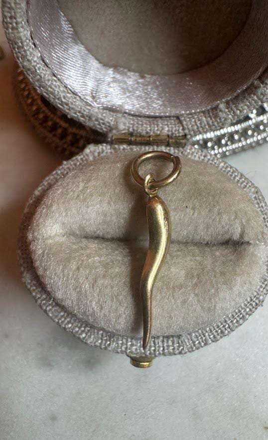 14kt Yellow GoldItalian Horn Charm .18 gramsVintage Pre-owned Condition Excellent with minor surface wearMade in ItalyBox shown not included, Beautifully packaged with 100% recycled material