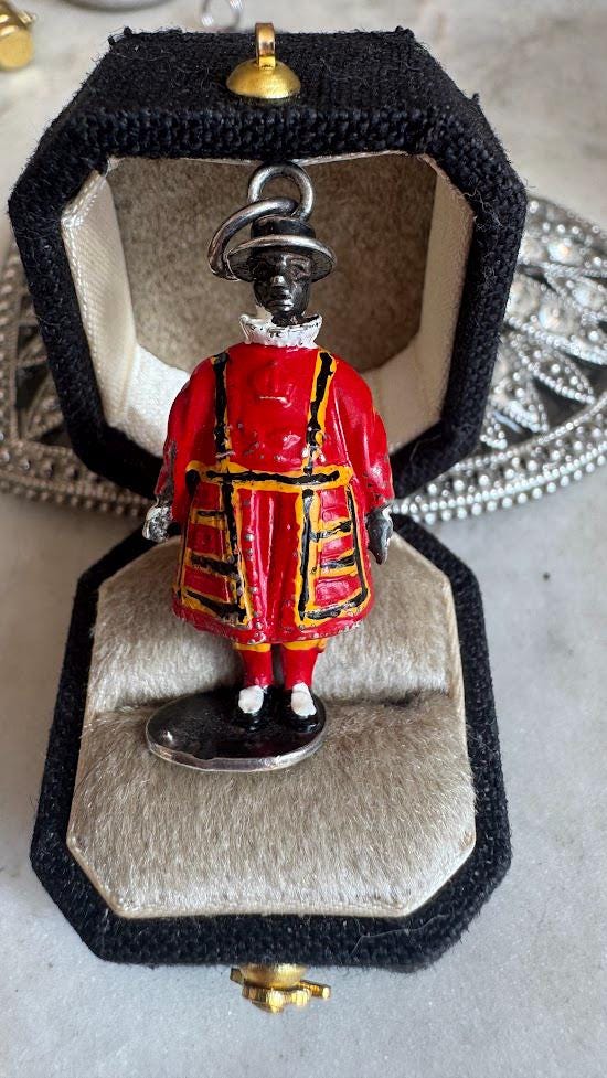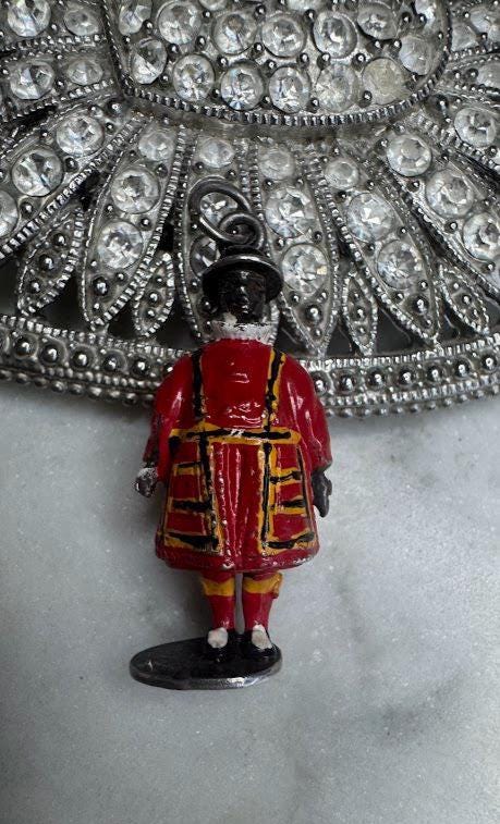Sterling .925 Rare Beefeater Ceremonial Guard Charm Pendant7.86 gramsVintage Pre-ownedCondition excellent with minor surface wearBox shown not included, Nicely packaged with 100% recycled material