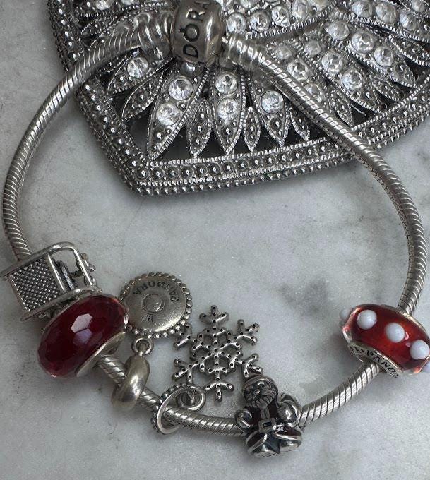 Pandora Sleigh, Red Bead, Three Kings (reversible), Snowflake, Santa Clause, Polka Dot Bead