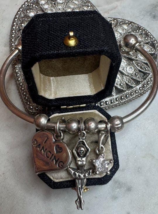 Sterling .925Cuff Bracelet & Dance Charms16.63 gramsVintage Pre-owned Condition Excellent with minor surface wearBox shown not included, Nicely packaged with 100% recycled material
