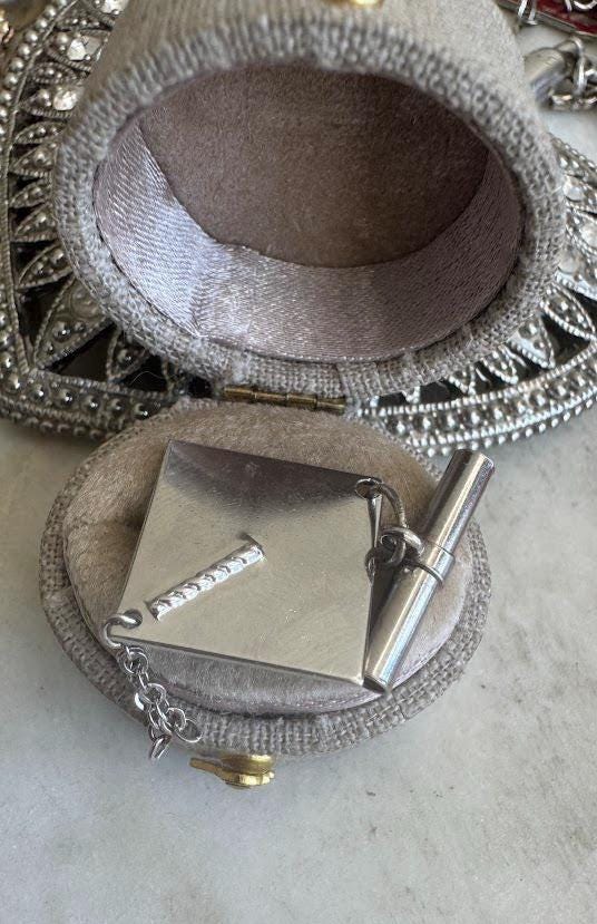Sterling .925 Rhodium PlatedCap & Gown & Diploma Charm2.5 gramsVintage PreownedBox shown not included, Nicely packaged