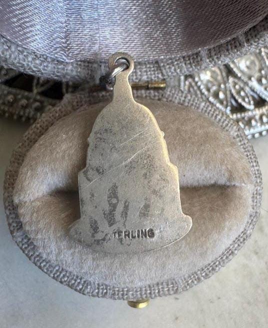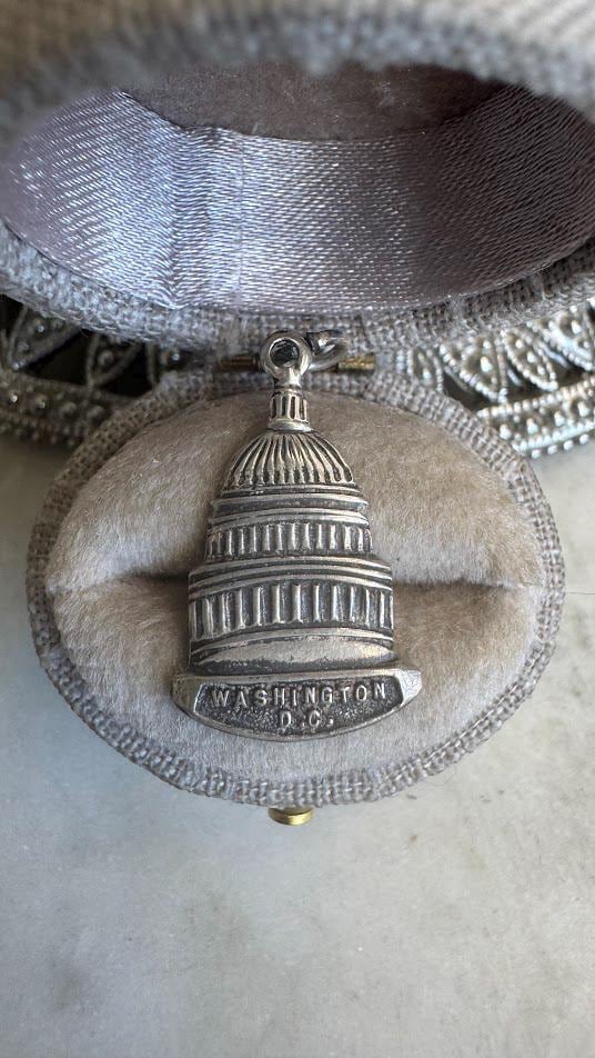 Sterling .925Vintage Silver White House Washington DC Charm Pendant1.93 gramsVintage PreownedCondition good with minor surface wear Box shown not included, Nicely packaged