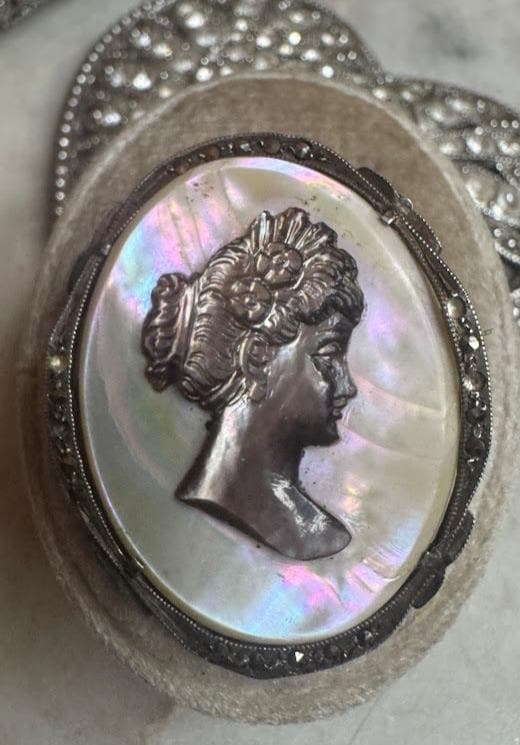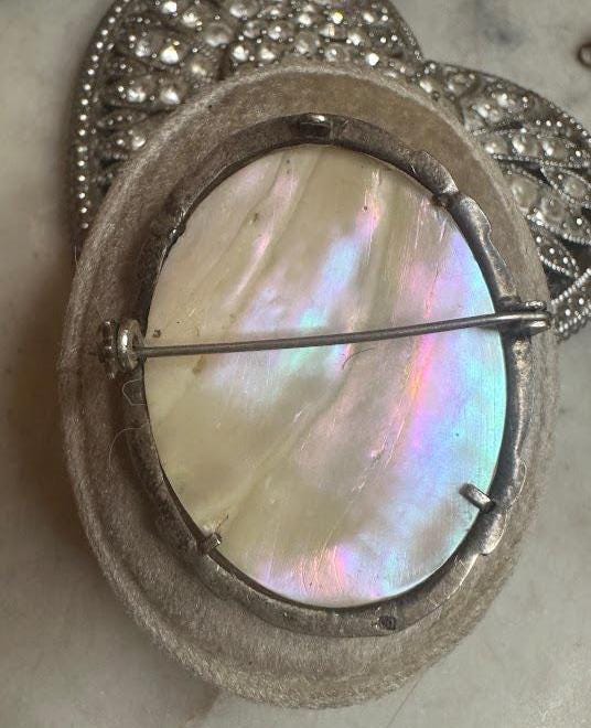 Sterling .925Mother of Pearl Abalone StonesDiamond Cut Marcasite6.83 gramsVintage PreownedCondition good with minor surface wear Box shown not included, Nicely packaged