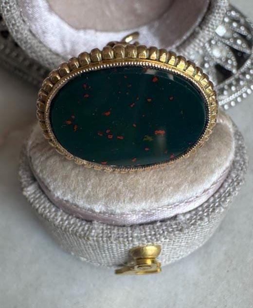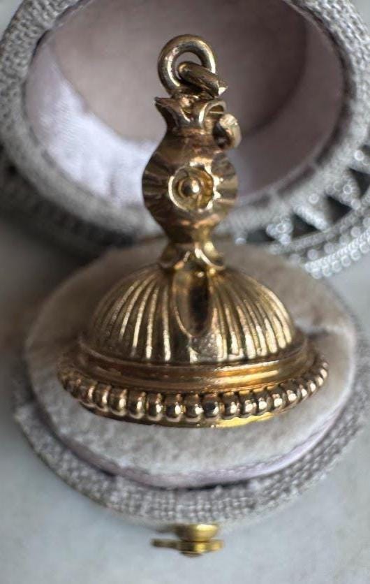 14kt Yellow GoldFob Seal Pendant CharmBloodstone Intaglio Heliotrope5.88 gramsVintage, Antique, Pre-owned Condition Good with minor surface wearBox shown not included, Beautifully packaged with 100% recycled material