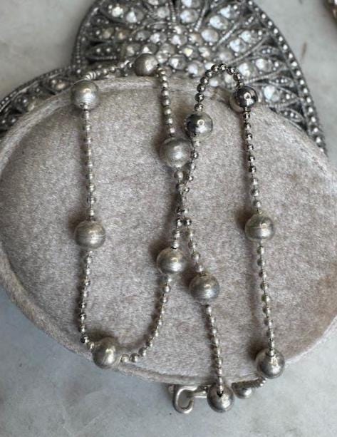Sterling Silver .925 Antique Beaded DesignRectangle Shape with "X" Design Lobster claw clasp 10.5in length3.33 gramsVintage, Pre-ownedCondition good with minor surface wearBox shown not included, Beautifully packaged
