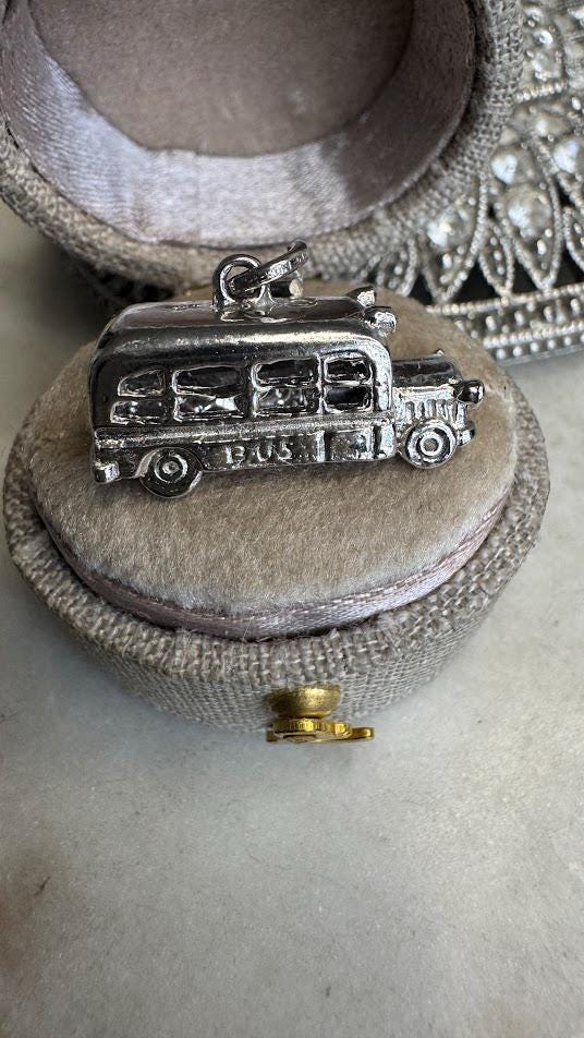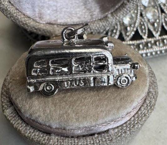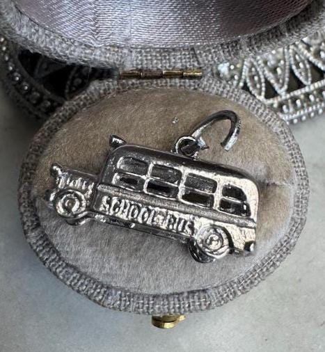 Sterling .925School Bus Charm2.59 gramsVintage PreownedCondition good with minor surface wear Box shown not included, Nicely packaged