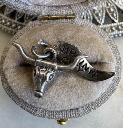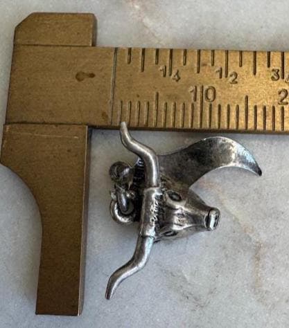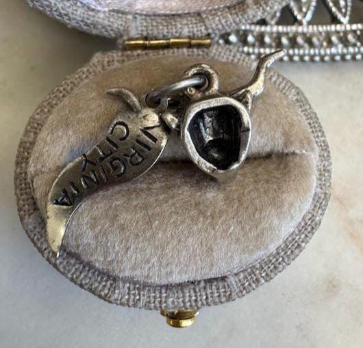 Sterling .925Virginia City Bull Charm1.58 gramsVintage PreownedCondition good with minor surface wear Box shown not included, Nicely packaged