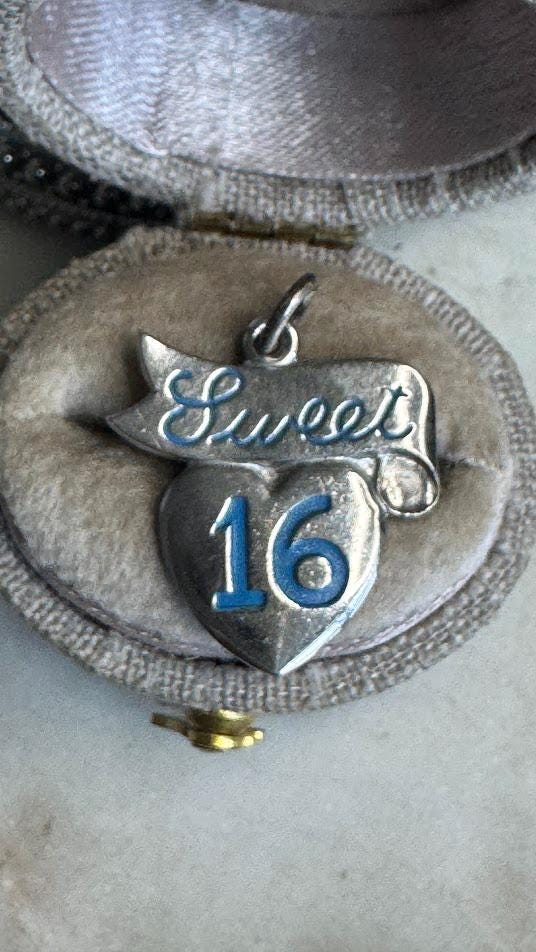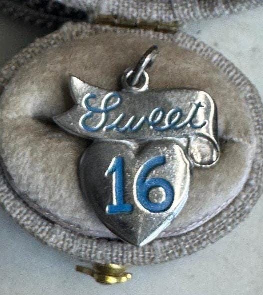 Sterling .925Sweet 16 Charm Pendant1.33 gramVintage, pre-ownedCondition excellent with minor surface wearBox shown not included, Beautifully packaged with 100% recycled material