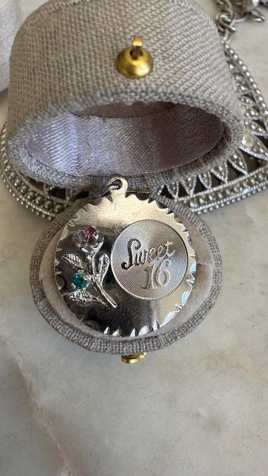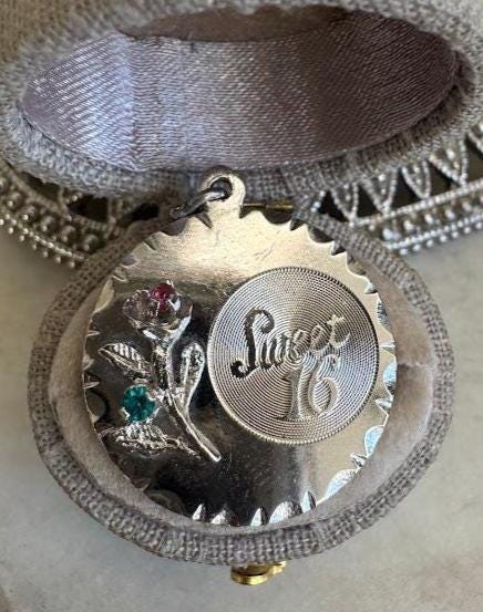 Sterling .925Sweet 16 Flower Pink & Green Charm Pendant3.04 gramVintage, pre-ownedCondition excellent with minor surface wearBox shown not included, Beautifully packaged with 100% recycled material