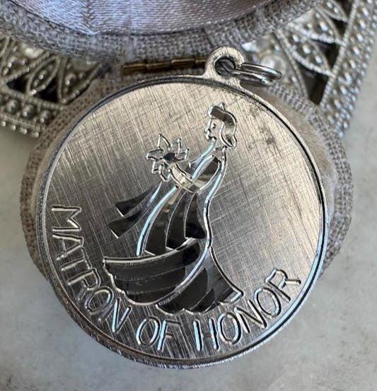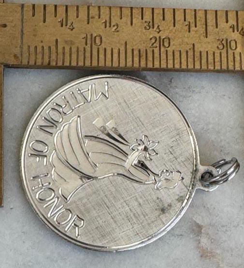 Sterling .925Round Matron of Honor Charm Pendant4.33 gramVintage, pre-ownedCondition excellent with minor surface wearBox shown not included, Beautifully packaged with 100% recycled material