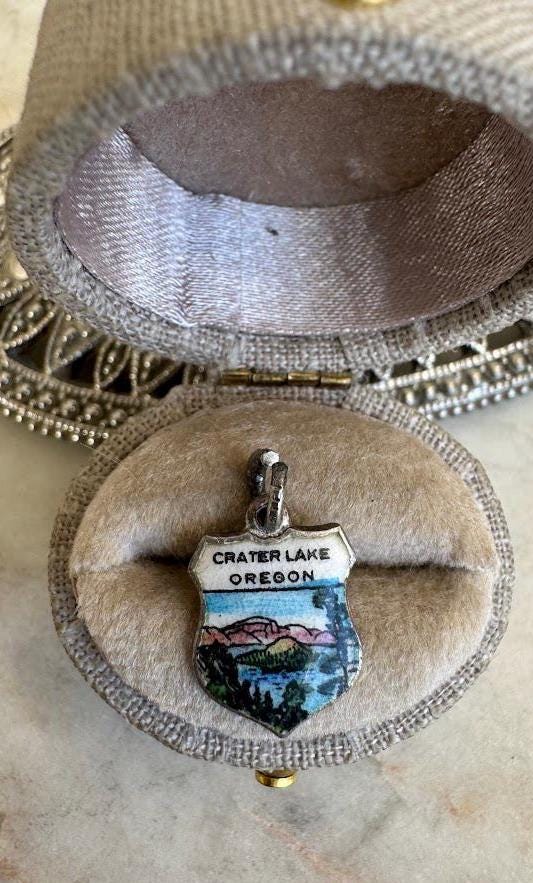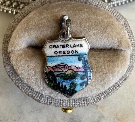 Sterling .925Crater Lake Oregon Charm.88 gramsVintage PreownedCondition good with minor surface wear Box shown not included, Nicely packaged
