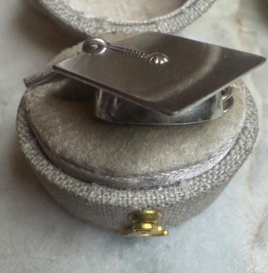 Sterling .925 Rhodium PlatedGraduation Cap Beau Charm with Moveable Tassel2.62 gramsVintage PreownedDesigner Danecraft SterlingBox shown not included, Nicely packaged