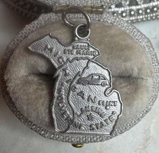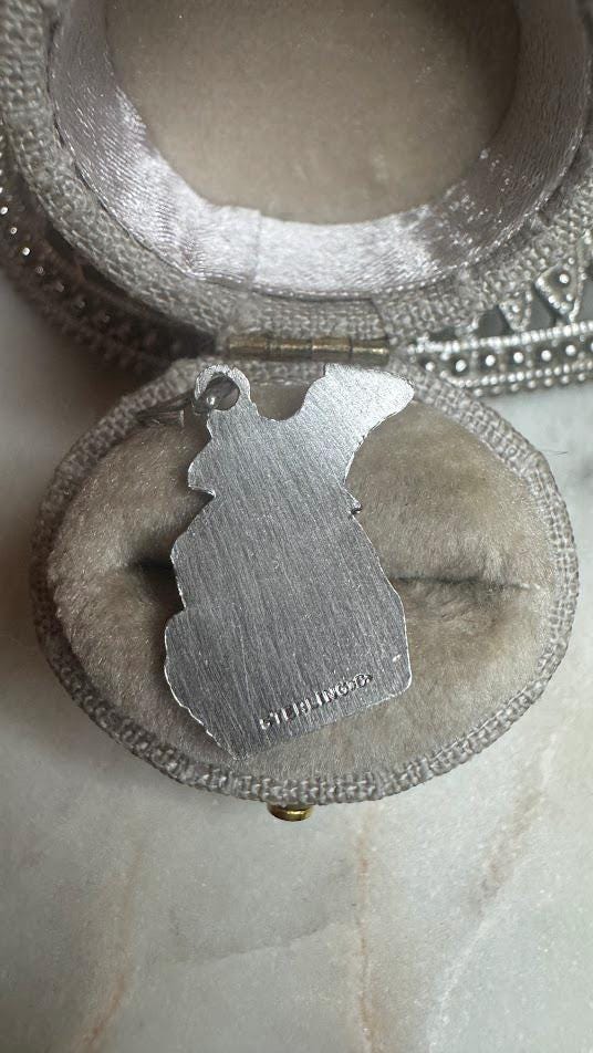 Sterling .925Michigan State Charm1.27 gramsVintage Pre-owned Condition excellent with minor surface wearBox shown not included, Nicely packaged with 100% recycled material
