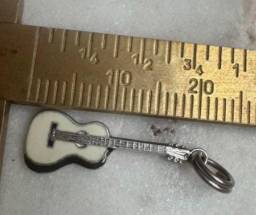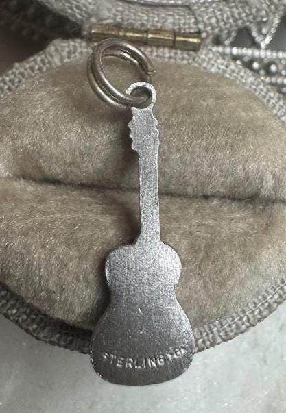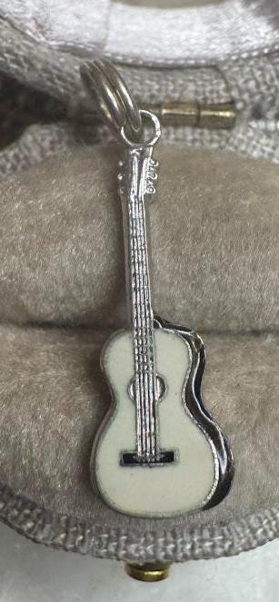 Sterling .925Guitar Charm.86 gramsVintage PreownedCondition good with minor surface wear Box shown not included, Nicely packaged