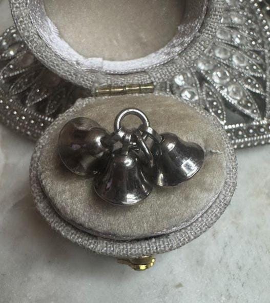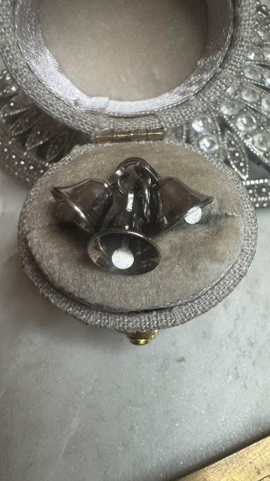 Sterling .925Rare Vintage Silver Bells CharmWorking Bells1.44 gramsVintage PreownedCondition good with minor surface wear Box shown not included, Nicely packaged