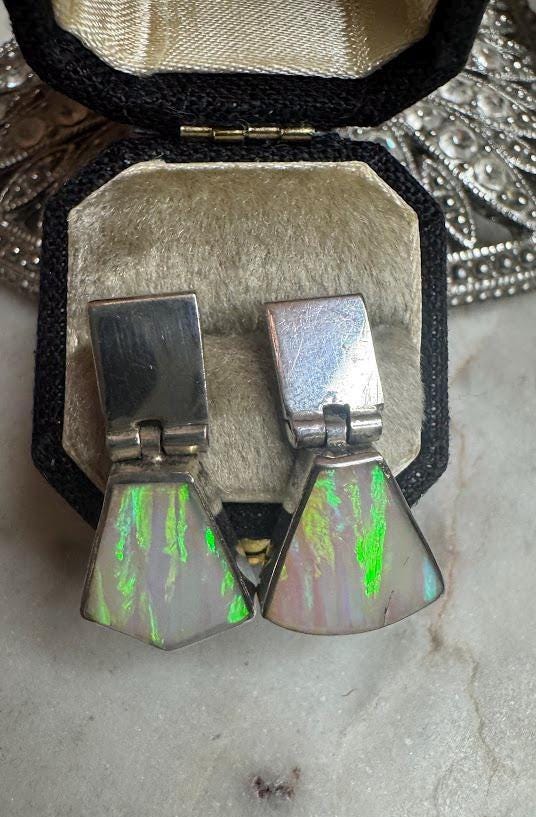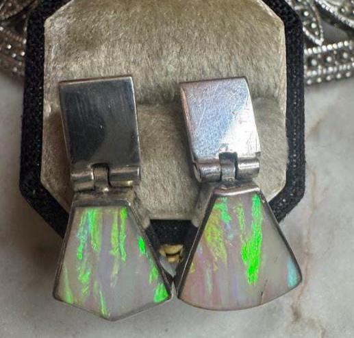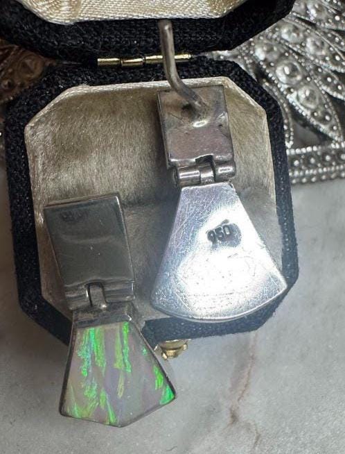 Sterling .925 Opal Center StonePost earring post6.89 gramsVintage Pre-ownedCondition Excellent with minor surface wearBox shown not included, Nicely packaged with 100% recycled material