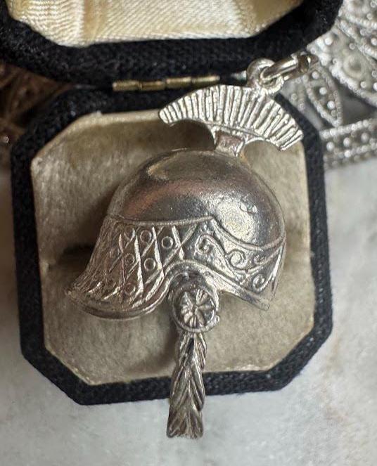 Sterling .925Gladiator Charm4.05 gramsVintage, pre-ownedCondition excellent with minor surface wearBox shown not included, Beautifully packaged with 100% recycled material