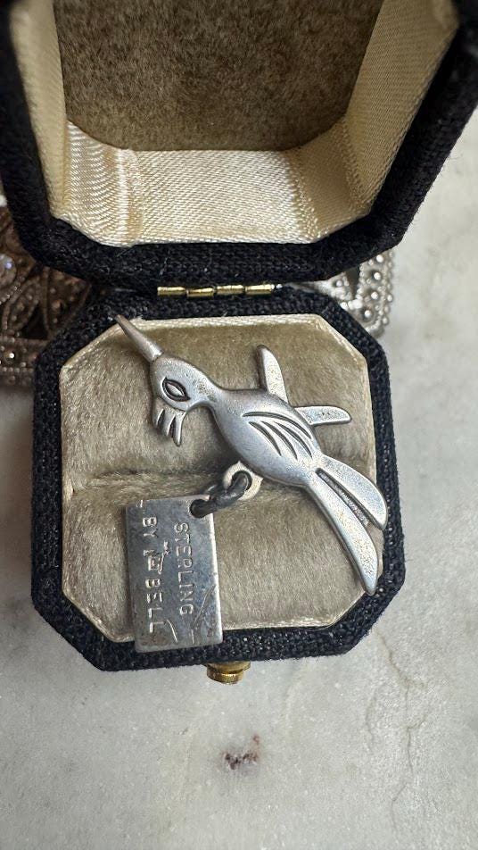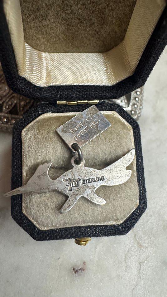 Sterling .925Bird Charm by Bell Carlsbad Taverns1.57 gramsVintage, pre-ownedCondition good with minor surface wearBox shown not included, Beautifully packaged with 100% recycled material