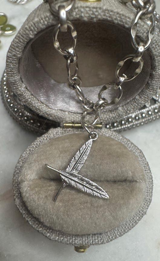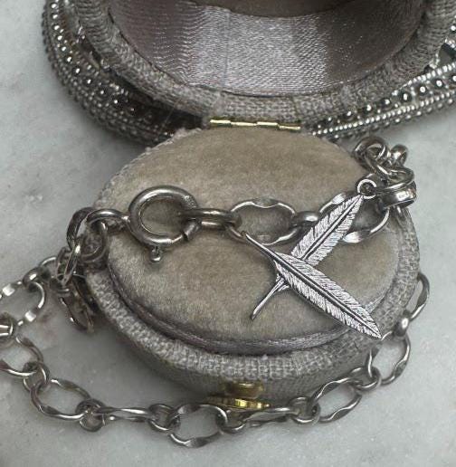 Sterling Silver .925 Oval Beaded link Feather CharmSpring ring clasp 7.5 in length4.37 gramsVintage, Pre-ownedCondition excellent with minor surface wearBox shown not included, Beautifully packaged