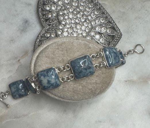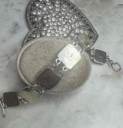 Sterling Silver .925Calcite Square StonesToggle clasp 7in length20.69 gramsVintage, Pre-ownedCondition excellent with minor surface wearBox shown not included, Beautifully packaged