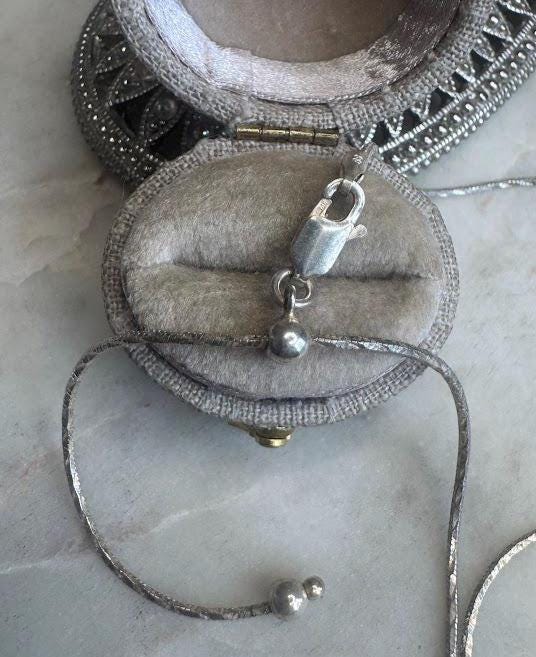 Sterling .925 Larimar Center StoneSnake Adjustable up to 21in length11.44 gramsVintage Pre-ownedCondition excellent with minor surface wearDesigner marked Made in ItalyBox shown not included, Beautifully packaged with 100 recycled materials