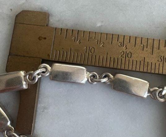 Sterling Silver .925Cross DesignLobster Claw clasp 8in length8.51 gramsVintage, Pre-ownedCondition excellent with minor surface wearBox shown not included, Beautifully packaged