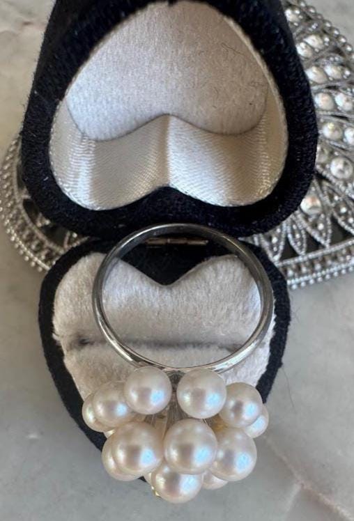 Sterling .925Culture Pearl Center StonesSize 6.754.27 gramsVintage, Pre-owned Condition excellent with minor surface wearBox shown not included, Beautifully packaged with 100% recycled material