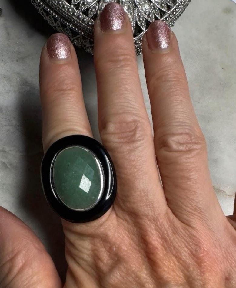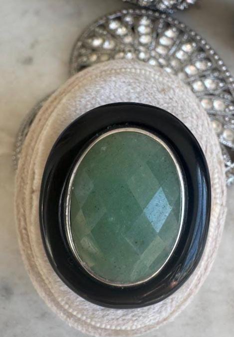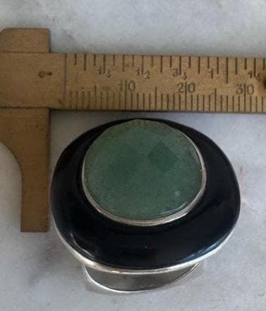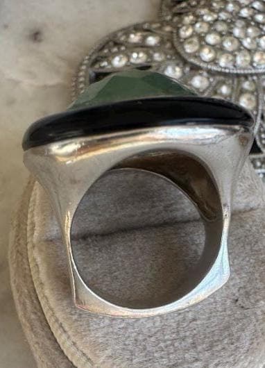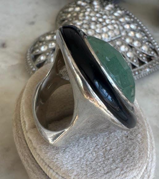 Sterling .925Black Onyx & Chrysoprase Center StonesSize 6.515.61 gramsVintage, Pre-owned Condition excellent with minor surface wearBox shown not included, Beautifully packaged with 100% recycled material