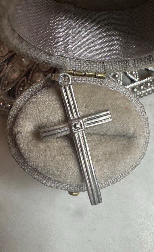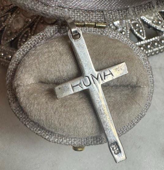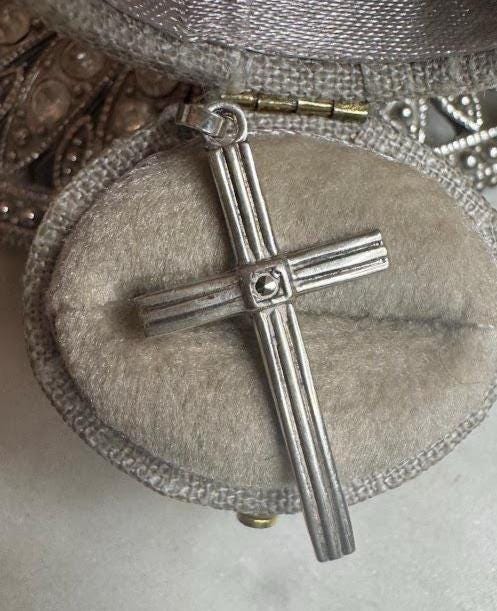 Sterling .925Cross Charm4.69 gramsVintage, pre-ownedCondition excellent with minor surface wearBox shown not included, Beautifully packaged with 100% recycled material