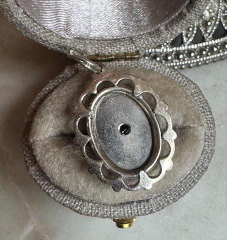 Sterling .925Sapphire Center Stone2.38 gramsVintage, Pre-owned Condition Good with minor surface wear Box shown not included, Beautifully packaged with 100% recycled materials