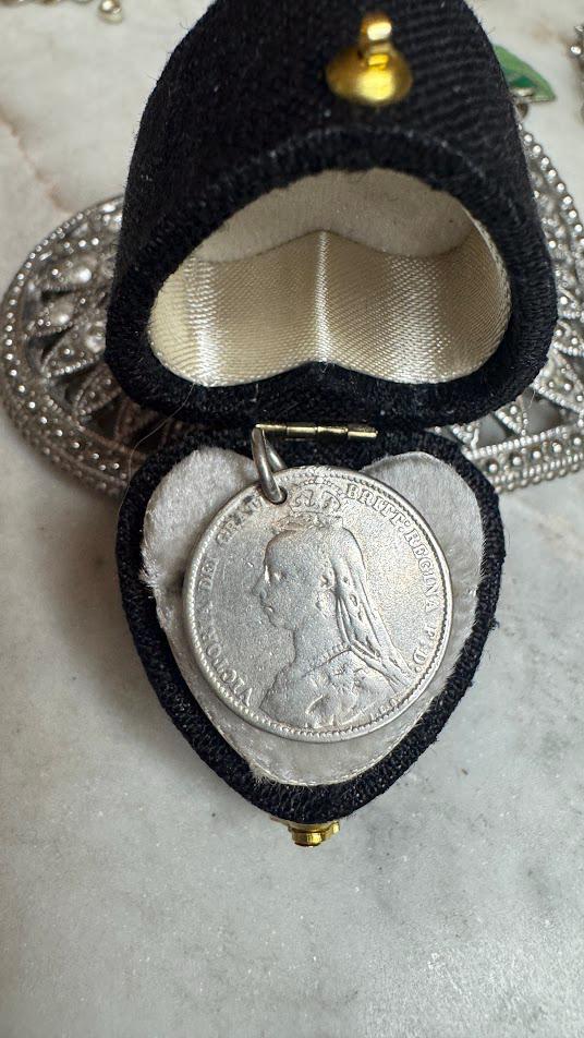 Sterling .925Queen Victoria Crest Charm2.79 gramsVintage Pre-owned Condition excellent with minor surface wearBox shown not included, Nicely packaged with 100% recycled material