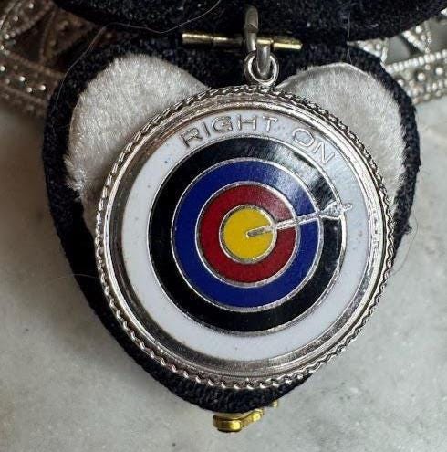Sterling .925Bull's Eye Charm3.77 gramsVintage Pre-owned Condition excellent with minor surface wearBox shown not included, Nicely packaged with 100% recycled material