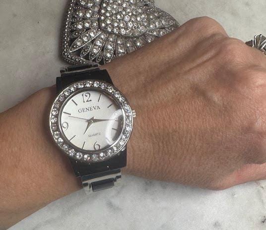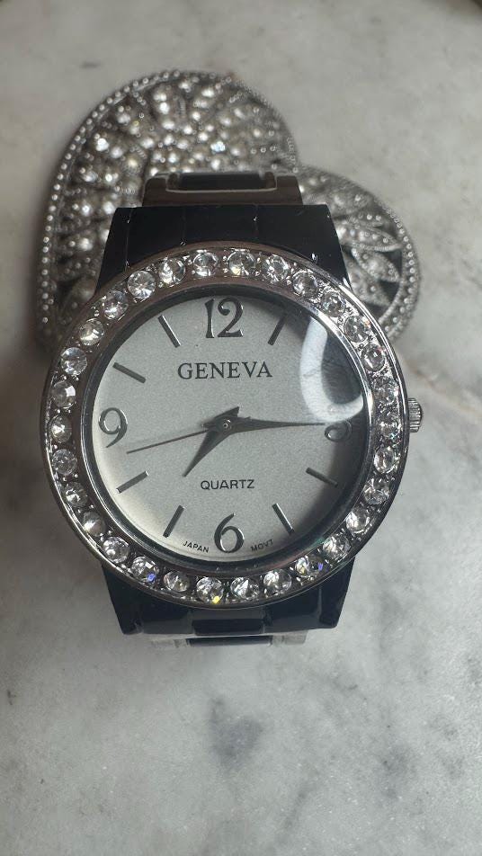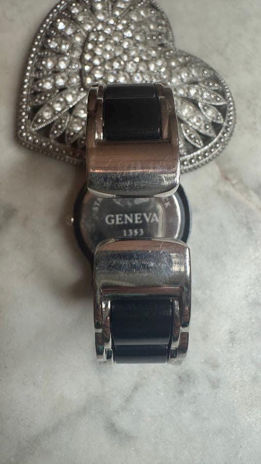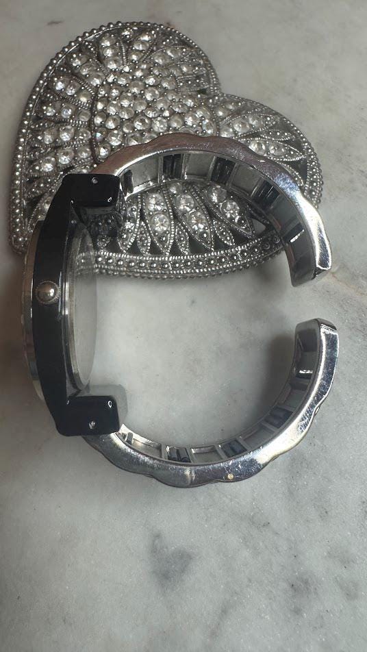 Sterling .925 Black & Rhinestone Bangle Cuff57.61 grams2.5in widthVintage, Pre-owned NEW BATTERYCondition excellent with minor surface wear-BARELY OR NEVER WORNBox shown not included, Beautifully packaged with 100% recycled materials