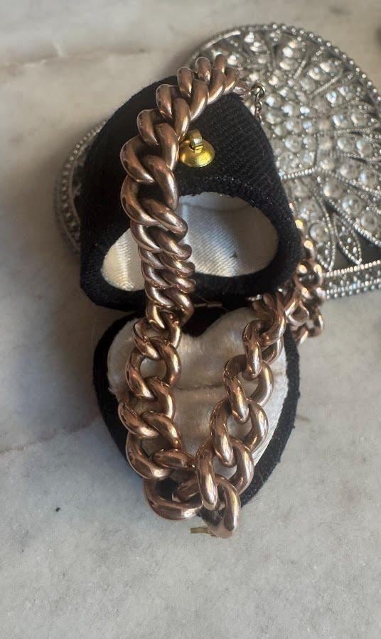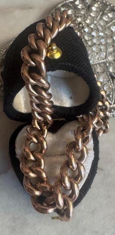 9 kt Rose GoldLink BraceletSpring ring clasp22.17 gramsPurchased in United KingdomVintage, Antique, Pre-owned Condition good with minor surface wearBox shown not included, Nicely packaged with 100% recycled material